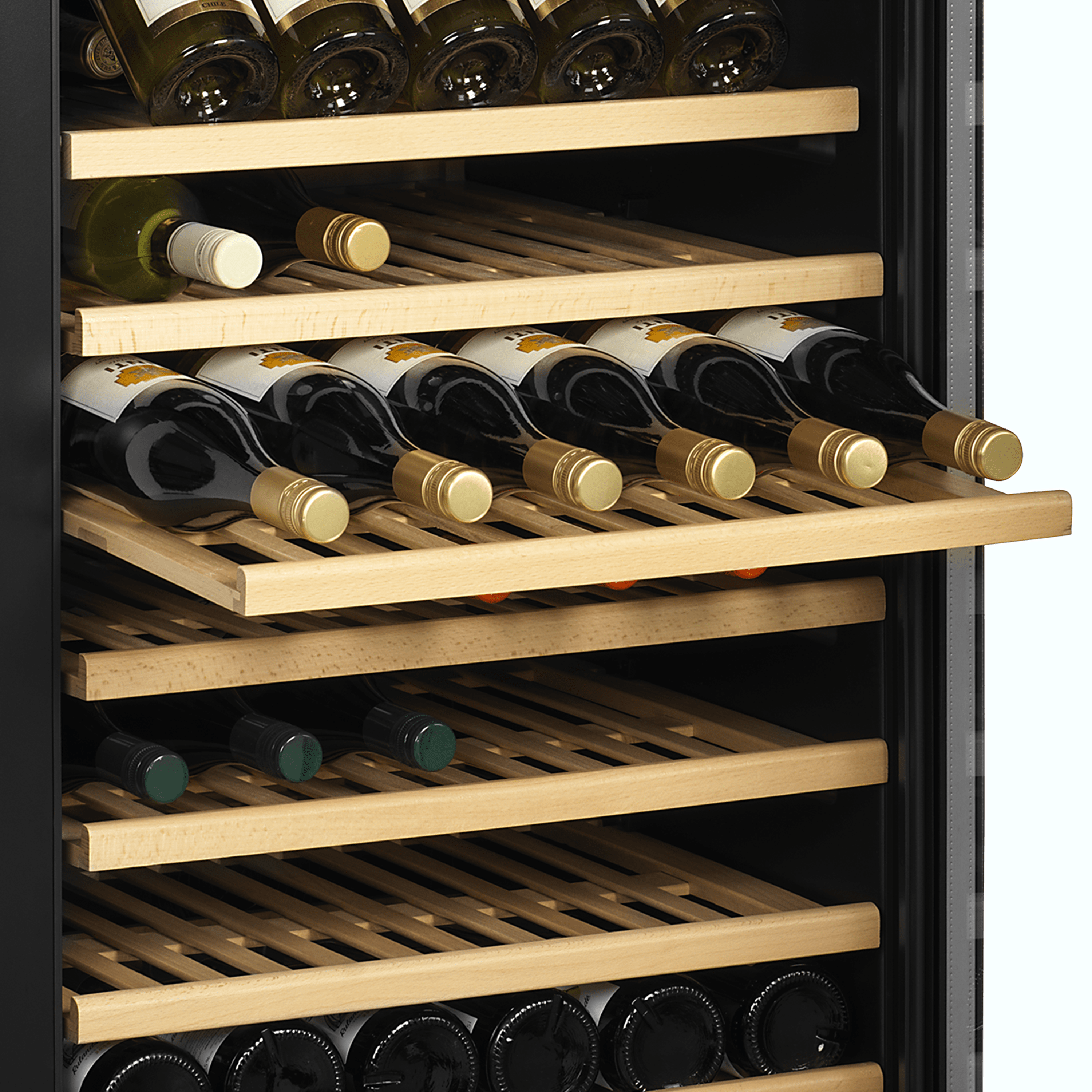 Probably the best way to store and display large quantities of wine bottles in style. Temperature can be adjusted to suit either white or red wines allowing you to keep them at a perfect ready to serve temperature. Slide out wooden shelves allow easy selection of wine and intelligent design of the shelf maximises storage space. Low level LED give mood lighting inside the cabinet. Dual temperature unit is also available